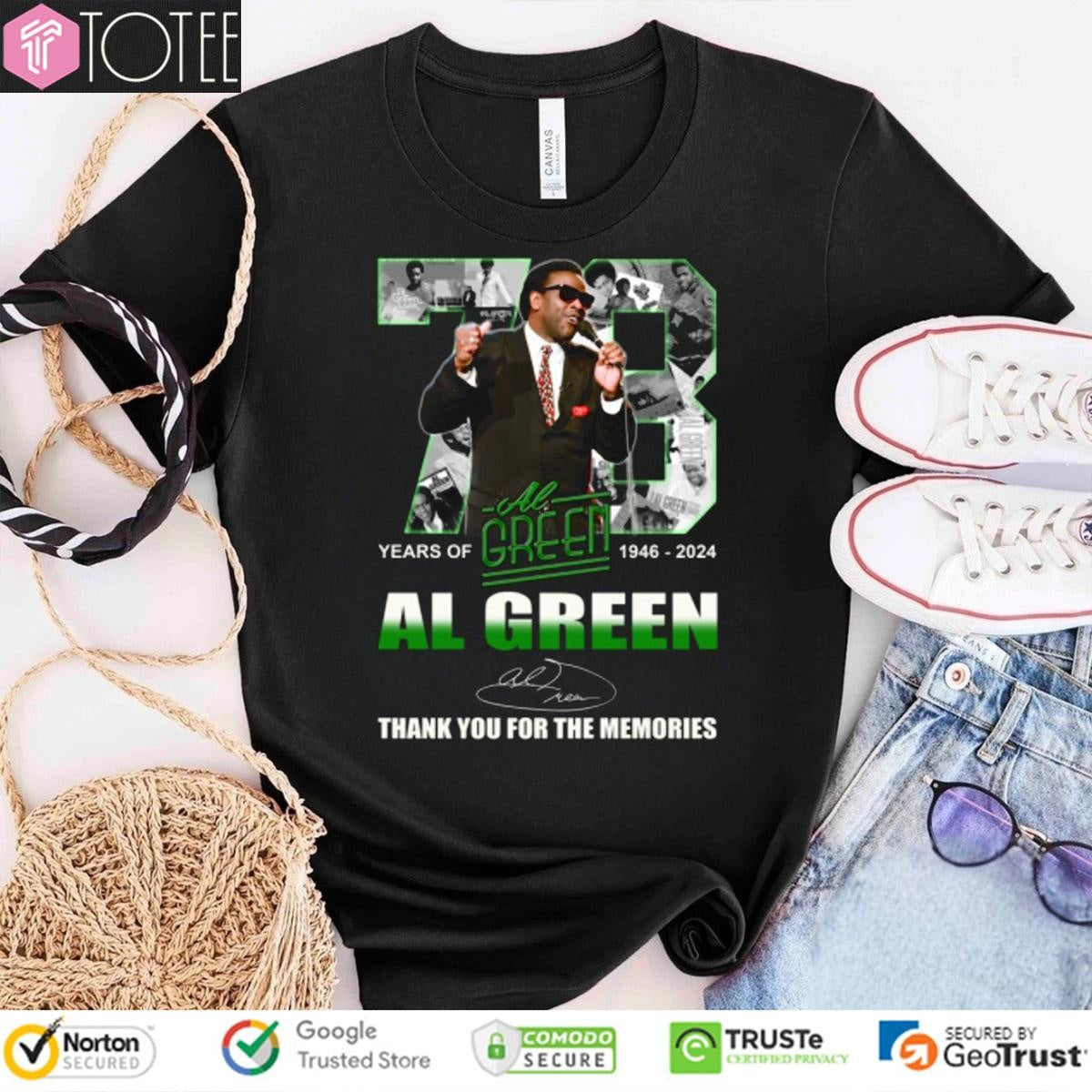 Capture the "73 Years Of 1946-2024 Al Green Signature T-shirt" essence of a music legend with our commemorative Al Green signature t-shirt. This wearable tribute honors Al Green’s exceptional career and his lasting influence on the world of soul. The 1946-2024 t-shirt design commemorates the artist's longevity and impact. It is a unique piece of memorabilia that resonates with true music aficionados. This collector's item is perfect for any fan. The design is a stylish nod to his iconic musical journey. Secure your piece of soul history now and carry the spirit of Al Green with you wherever you go. Feel the vibe and share the experience.