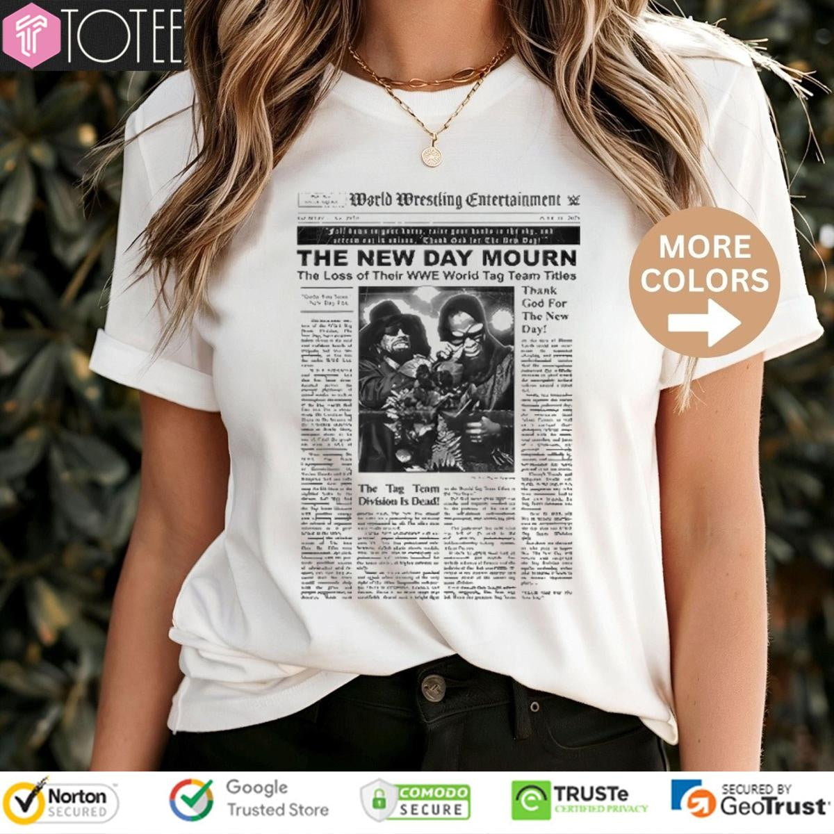 Following their "The New Day In Mourning The Loss Of Their Wwe World Tag Team Titles T-shirt" recent title loss, WWE has launched a special t-shirt collection dedicated to the New Day. The collection includes the "In Mourning" tee, a symbol of respect for the trio's legacy. This release offers fans a way to celebrate the team's impressive championship runs. Each shirt design reflects the New Day’s unique personality and their incredible connection with the WWE Universe. The t-shirts are crafted for comfort and durability. Now is the ideal time to add to your collection and show your support for Big E, Kofi Kingston, and Xavier Woods. Secure your New Day merchandise today.